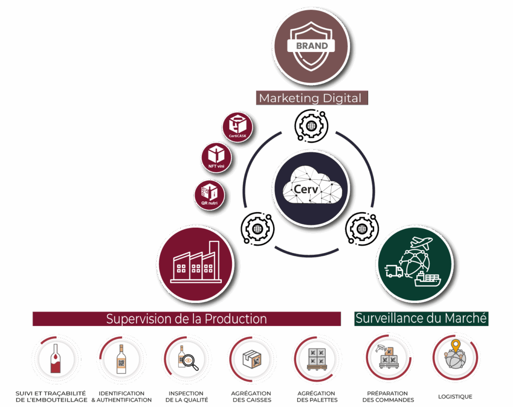 Prooftag Cerv offre la possibilité de mettre en relation chaque bouteille avec son acheteur ou son pays de destination. En association avec les données de consultation, vous visualisez rapidement les anomalies de votre réseau de distribution liées à l’apparition de marchés parallèles et les opportunités de développement commercial.