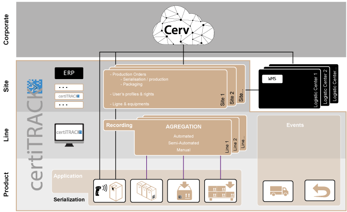 Dank CertiTRACK können Sie die Aggregation und die Überwachung von Produkten (Produkt/Karton/Palette…) an der Produktionslinie verwalten.
